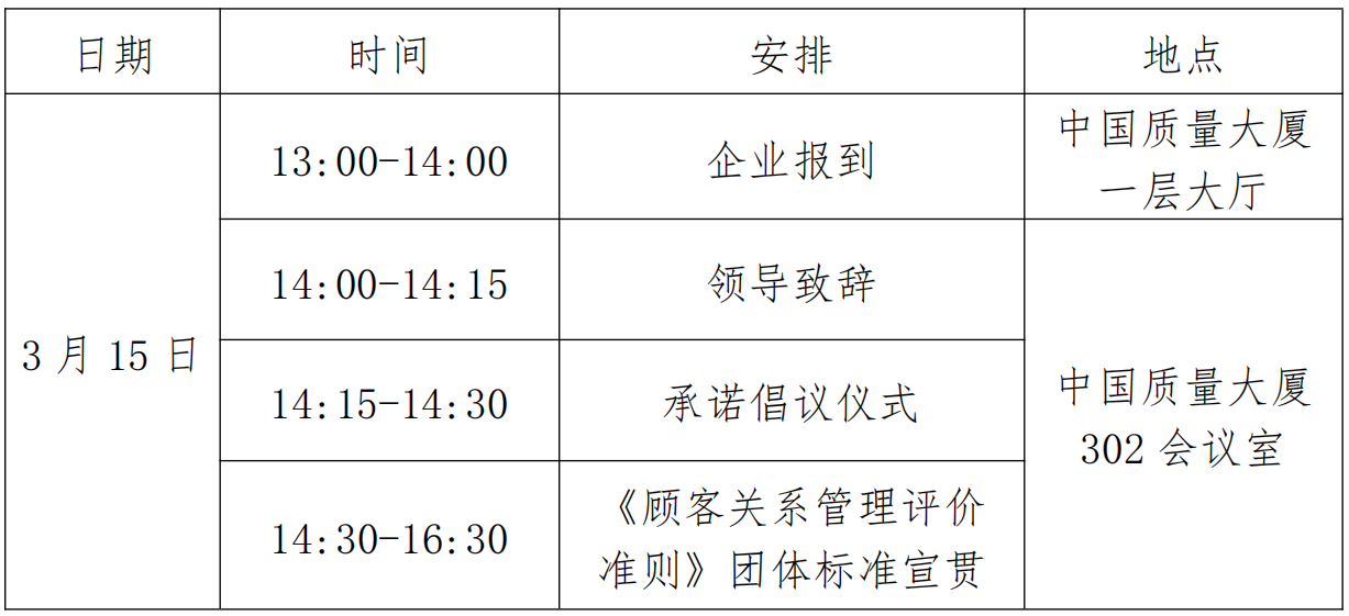中国质协将于3月15日下午举办承诺倡议仪式和《顾客关系管理评价准则》(T/CAQ 10301-2022)团体标准宣贯,企业可现场或线上参加。