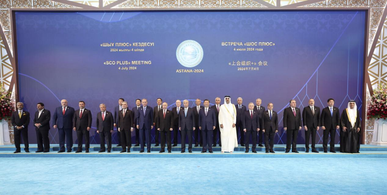 当地时间7月4日下午,国家主席习近平在阿斯塔纳出席“上海合作组织+”阿斯塔纳峰会并发表题为《携手构建更加美好的上海合作组织家园》的重要讲话。