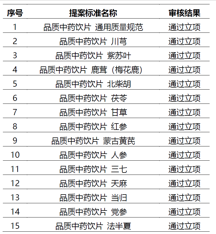为进一步发挥团体标准支撑和引领行业发展的作用,加快推进品质中药产品满足市场和行业需求,中国质量协会依据《中国质量协会团体标准管理办法》《中国质量协会团体标准审查和批准工作细则》规定,组织相应行业专家对品质中药饮片系列团体标准申报项目进行了立项审查。现将有关情况公告如下。
