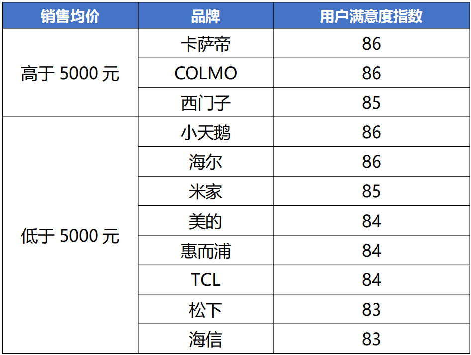 8000元以上和4001-6000元价位洗衣机表现出色。2024年,在高端市场,8000元以上价位洗衣机凭借卓越的感知质量脱颖而出,这些产品在洗涤脱水效果、外观设计、智能功能以及杀菌除菌效果方面均受到用户高度认可,用户满意度为87分,与2023年持平。而在中高端市场,4001-6000元价位洗衣机凭借高感知质量和感知价值获得用户喜爱,其中感知质量和感知价值同比提升1.4分和2.2分,用户满意度为86分,同比提升2分。