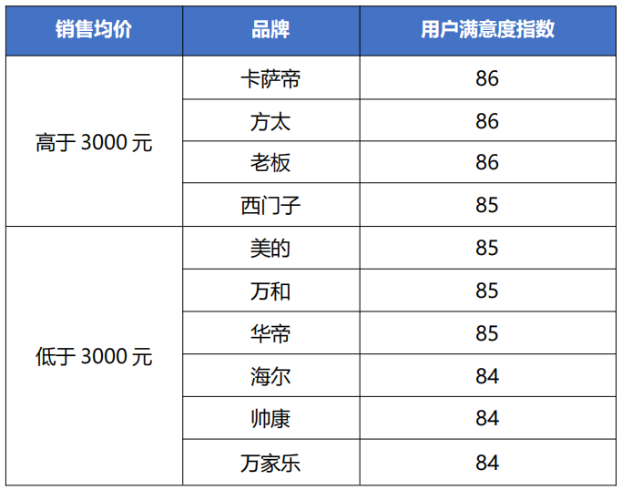 2024年油烟机行业各品牌用户满意度指数