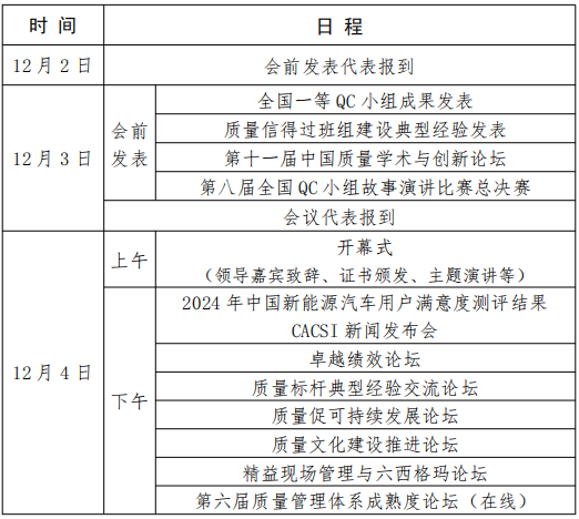 为全面贯彻落实党中央、国务院关于《质量强国建设纲要》的部署要求,持续深入推动新时代质量效益提升行动,激励和引导我国各类组织追求卓越经营,提高经济社会发展质量,中国质量协会将于2024年12月3日至4日,在北京召开2024中国质量协会年会。会议期间将组织开展多场次平行论坛及专题质量交流活动。现将有关事宜通知如下。