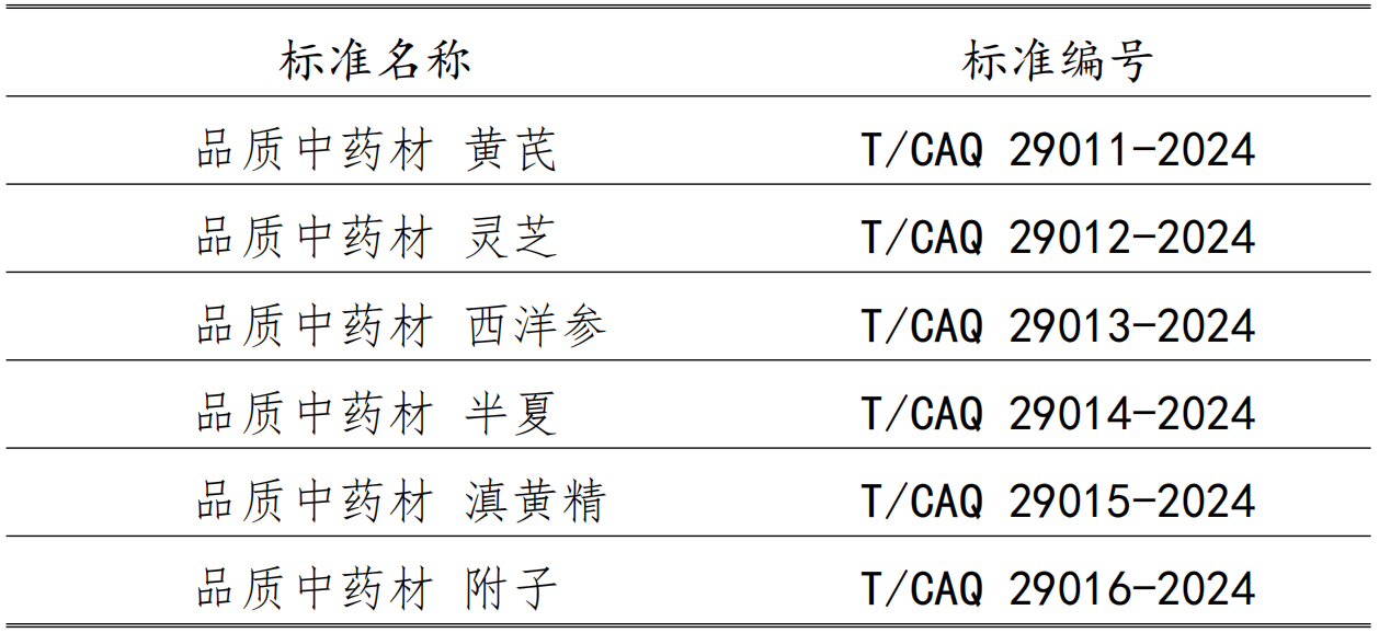 根据《中国质量协会团体标准管理办法》的相关规定,中国质量协会批准发布《品质中药材 黄芪》等六项团体标准,自2024年11月7日起实施。标准名称及编号如下: