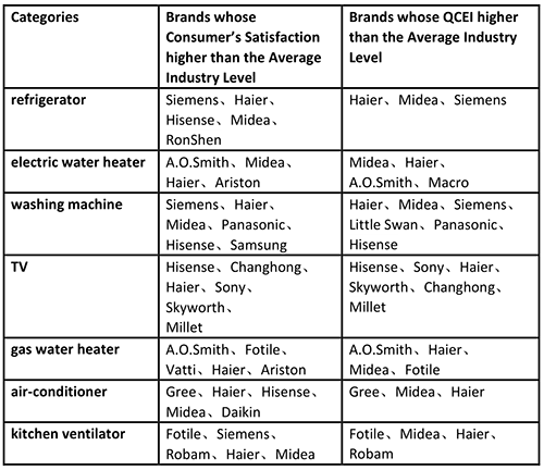2020 Home Appliances Brands whose Consumer’s Satisfaction and Quality Consumer Experience Index (QCEI) Higher than the Average Industry Level