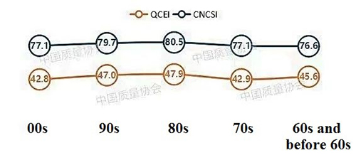 c.Post-80s and post-90s have high satisfaction scores. Post-80s and post-90s have relatively high scores on customer satisfaction and QCEI, which showed the characteristics of "high in the middle and low at both ends".