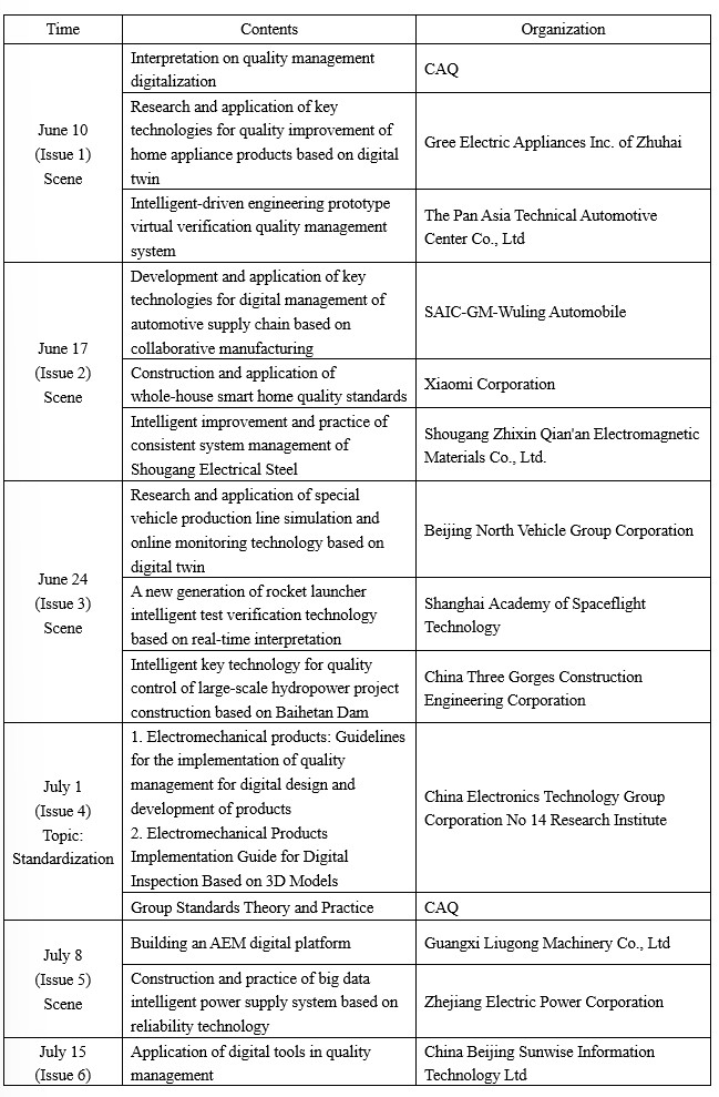 CAQ is holding an online forum on Quality Management Digitalization themed on “Focus on Quality Digitalization and Consolidate the Quality Foundation” from June 10 to July 15. Pls see the following agenda.