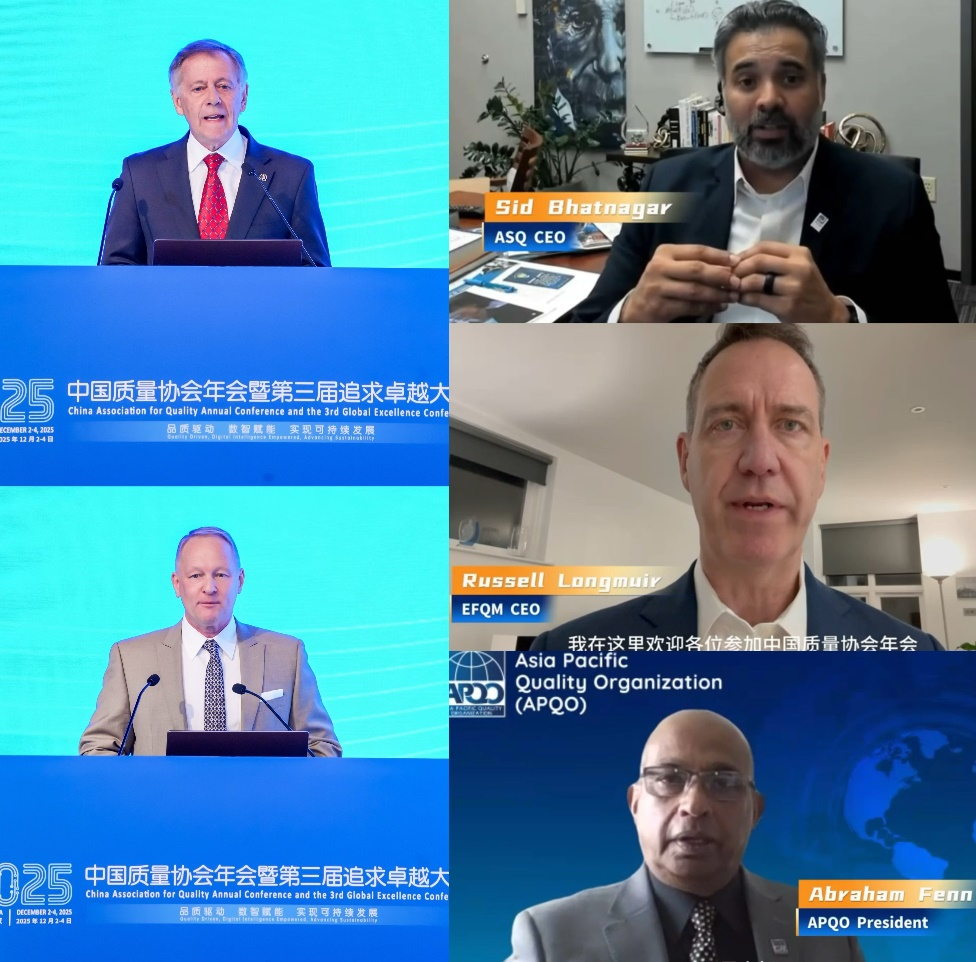 From December 2 to 4, the 2025 Annual Conference of China Association for Quality (CAQ) and the 3rd Global Excellence Conference were held in Beijing. The event, themed “Quality Driven and Digitally Empowered for Sustainable Development,” brought together more than 1,500 representatives from international quality organizations, the national Quality Association network, and enterprises and institutions.