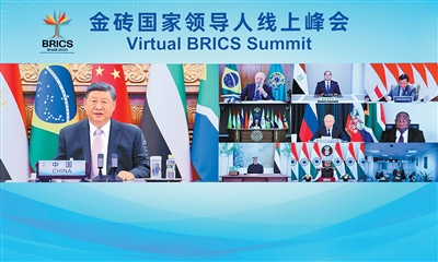 9月8日晚,国家主席习近平出席金砖国家领导人线上峰会,并发表题为《团结合作 砥砺前行》的重要讲话。
